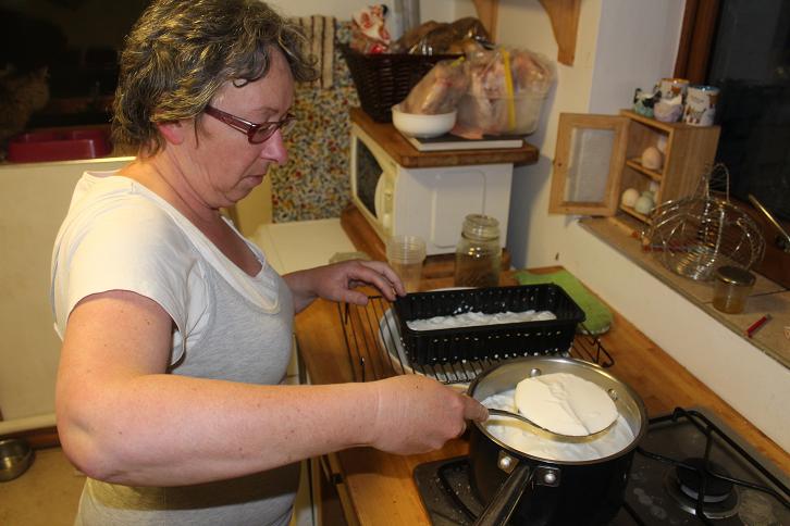Meanwhile in other news we are suddenly over-run with eggs. We went through early Feb with the girls laying sometimes 1 or two, even no eggs a day. Our poorest week was only 7 eggs. Lots of different chickens, but only one egg each that week. Suddenly everybody came back into lay all at once, often laying in bizarre new places. Some lay on top of a stack of straw bales 5 feet up, one in the pig ark (currently Billy goat house), some in straw down under my tool boxes and workbench and one in the rabbit 'Maternity Unit' (as was).