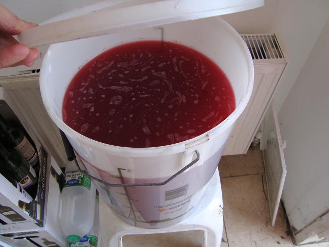 | Good vigorous ferment still going in the 'hedgerow' wine. |