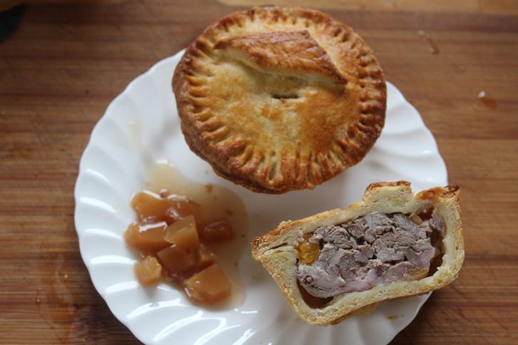 The finished pie with a dollop of Liz's mango chutney.